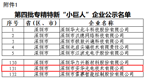 8月8日,國家工信部對第四批專精特新“小巨人”企業名單進行公示,安華光電以領先的產品與技術、高質量的企業創新能力,榮獲新一批國家級專精特新“小巨人”企業榮譽稱號。